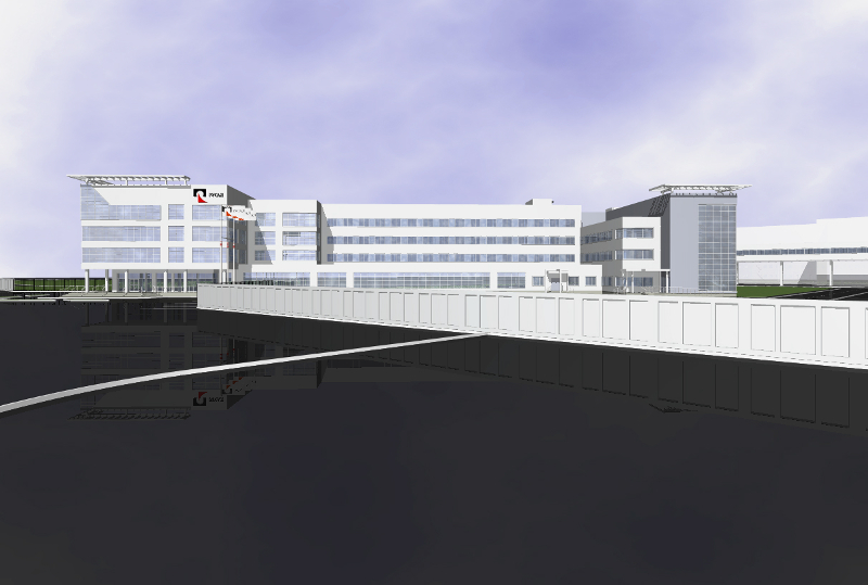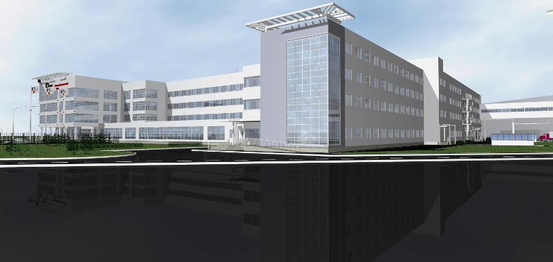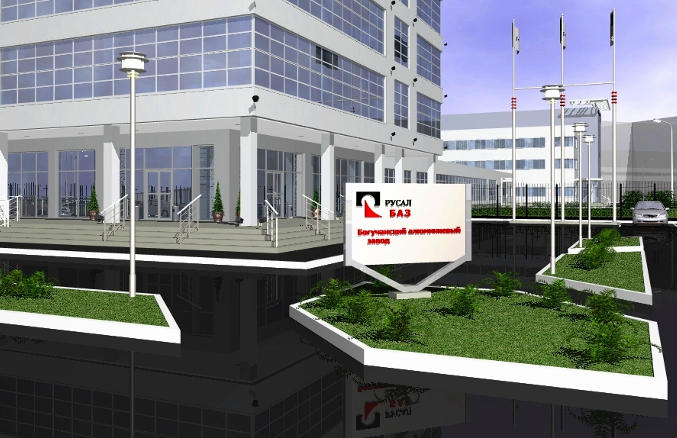 Крупномасштабность основных зданий комплекса, разновысотность объемов, создают выразительный архитектурный облик административного здания, хорошо видимый со стороны главного въезда на территорию промышленной площадки завода.